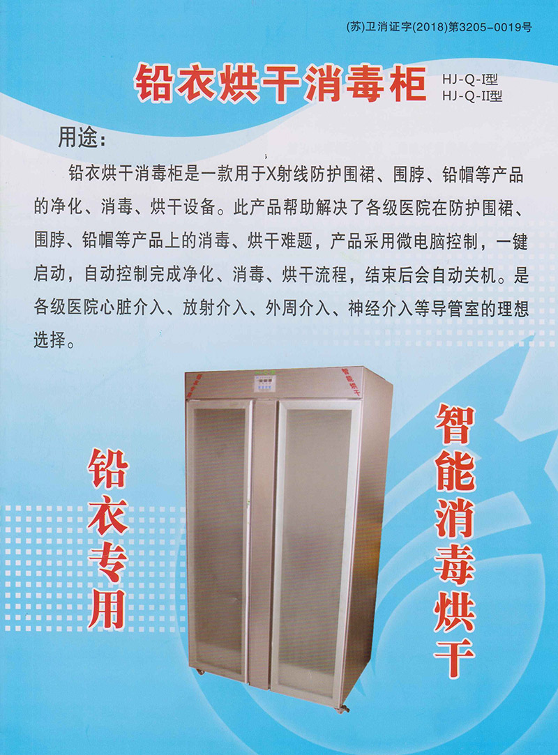 鉛衣烘干消毒柜是-款用于X射線防護圍裙、圍脖、鉛帽等產(chǎn)品的凈化、消毒、烘干設備。此產(chǎn)品幫助解決了各級醫(yī)院在防護圍裙、圍脖、鉛帽等產(chǎn)品上的消毒、烘干難題,產(chǎn)品采用微電腦控制,一鍵啟動,自動控制完成凈化、消毒、烘干流程,結(jié)束后會自動關(guān)機。是各級醫(yī)院心臟介入、放射介入、外周介入、神經(jīng)介入等導管室的理想選擇。