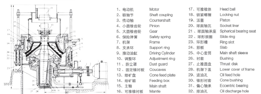 PYH系列圓錐破碎機(jī)完全摒棄了傳統(tǒng)國產(chǎn)圓錐破碎機(jī)采用的水密封裝置,改而采用干油密封裝置,只要及時(shí)更換潤滑脂,即可獲得良好的密封效果,并杜絕了油水混合的現(xiàn)象;采用大流量、空調(diào)冷卻的新型稀油站取代小流量、水冷卻的舊式稀油站,使機(jī)器獲得更好的潤滑效果。