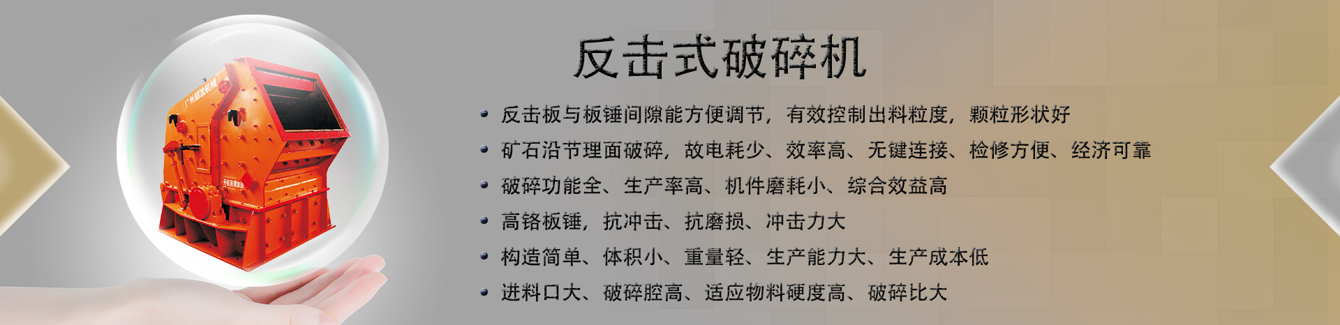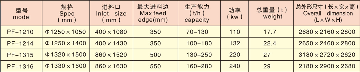 破碎功能全、生產(chǎn)率高、機件磨耗小、綜合效益高;